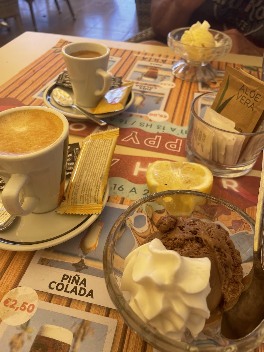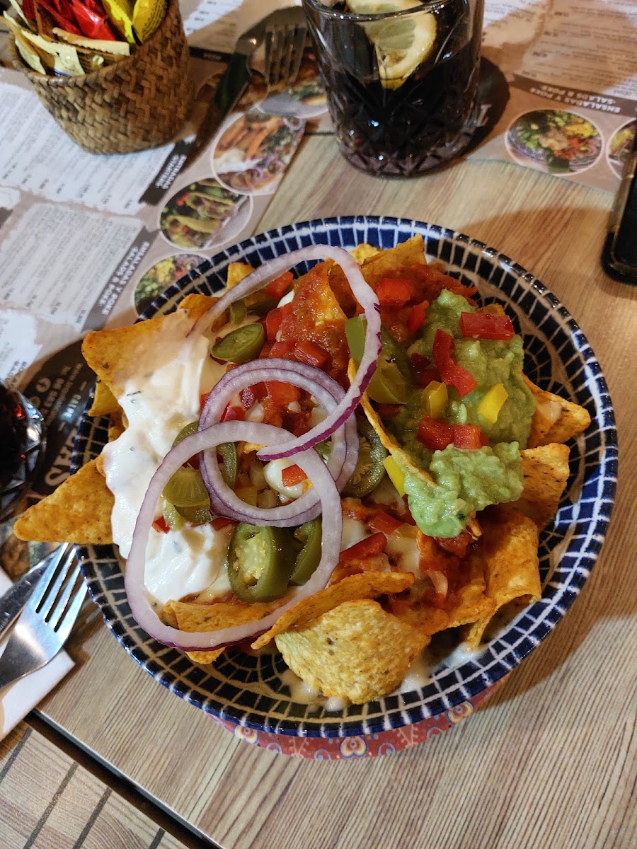 Had a great afternoon here. Had a walk in the sun. Had drinks in the garden but rain stopped play. Inside further happy hour drinks, sweets as entree and great nachos for 6 euros. Great staff, service a little slow but overwhelmed by the customers from the rain. Will come again.
